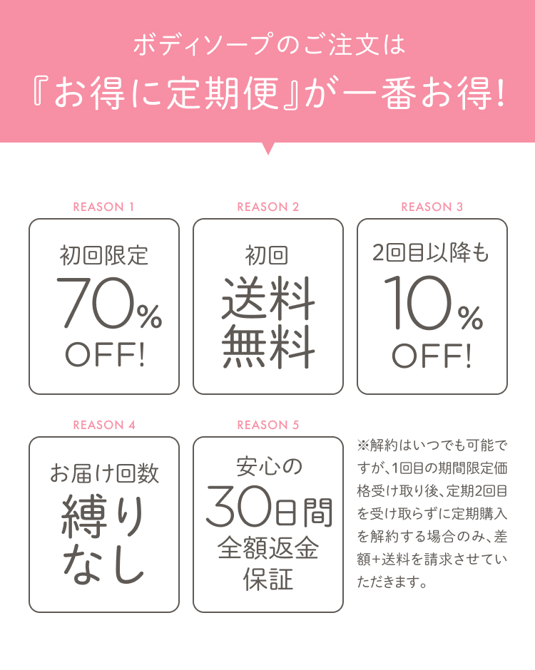※ 定期2回目以降はマイページから配送希望サイクルを30日・45日・60日・90日と選択できます。